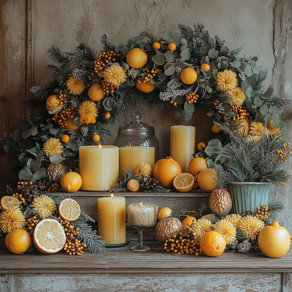 Bring the warmth of nature into your home by incorporating yellow elements such as golden berries, dried yellow flowers, or citrus garlands into your decor. These natural touches bring an organic feel to your Christmas look.